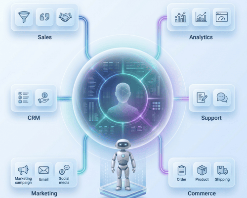- IT & Ops: Proactive System Health AI agents monitor your internal integrations. If a data flow between Commerce and Service breaks, the agent identifies the root cause and alerts the team with a suggested fix.